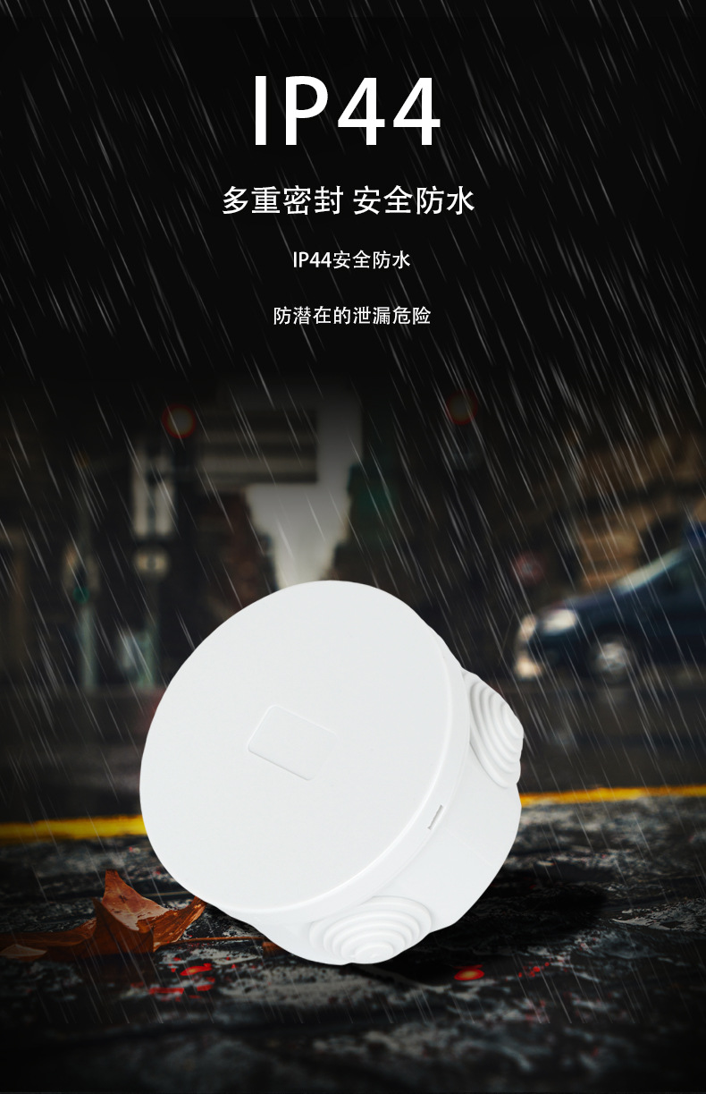 尺寸:80×40(mm)多重密封/安全防水 防水IP等級(jí) (IP44)可供選材料(常ABS)ABS阻燃、PC,合金材PC阻燃安全可靠/耐高溫/耐電/壽命長(zhǎng)每一個(gè)部分都是精心挑選的,只是為了打造一個(gè)好的產(chǎn)品