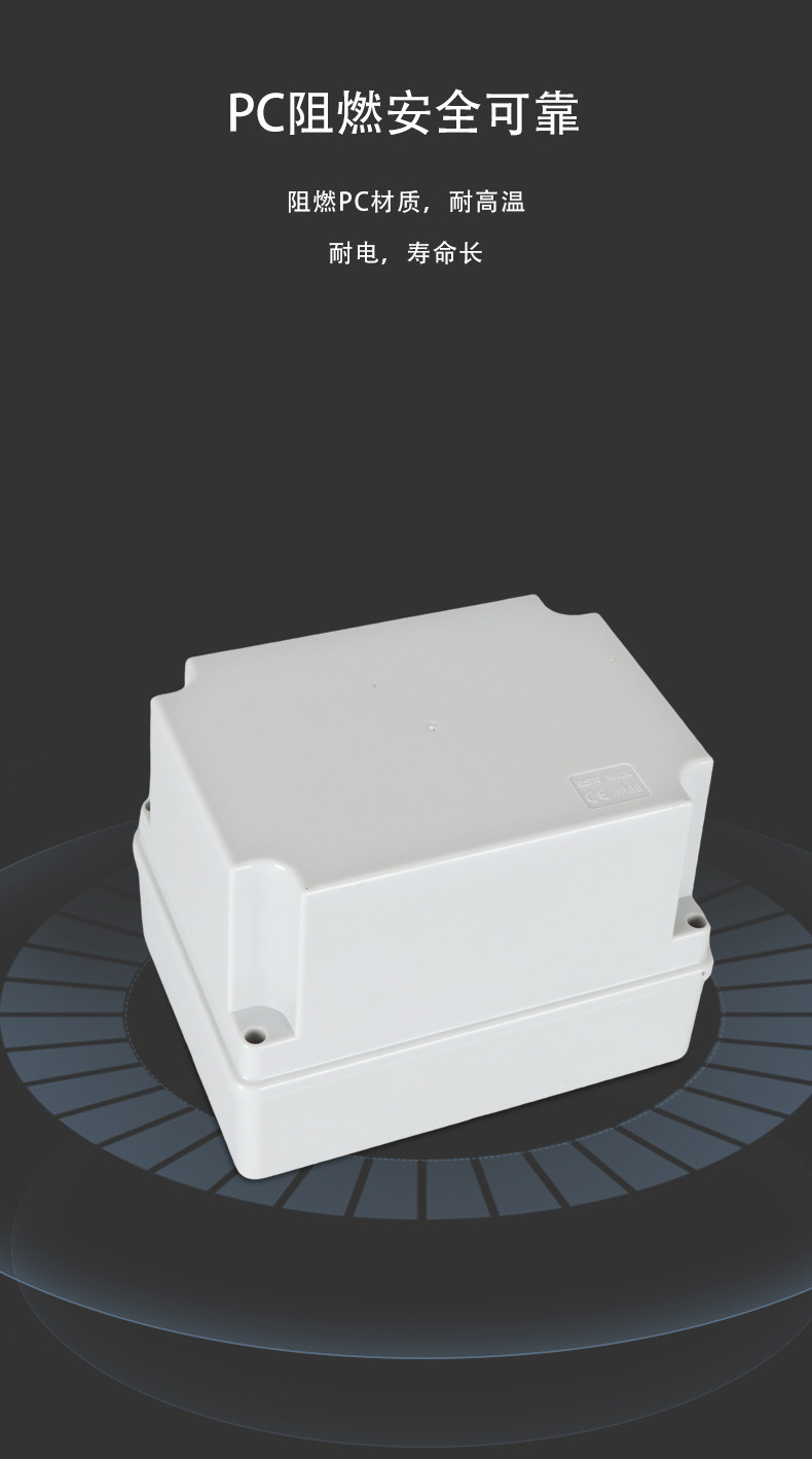 尺寸:190×140×140(mm)多重密封/安全防水 防水IP等級 (IP44)可供選材料(常ABS)ABS阻燃、PC,合金材PC阻燃安全可靠/耐高溫/耐電/壽命長每一個(gè)部分都是精心挑選的,只是為了打造一個(gè)好的產(chǎn)品