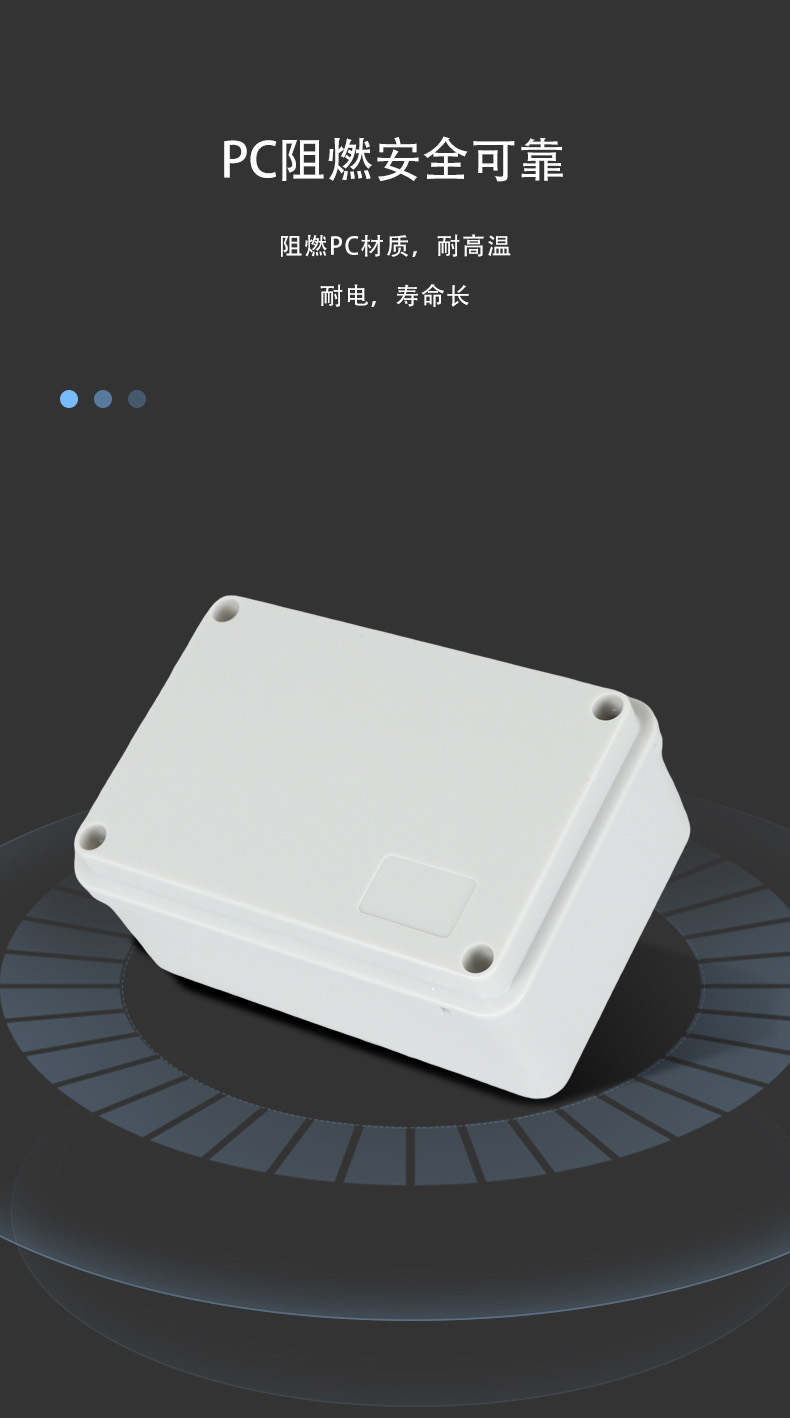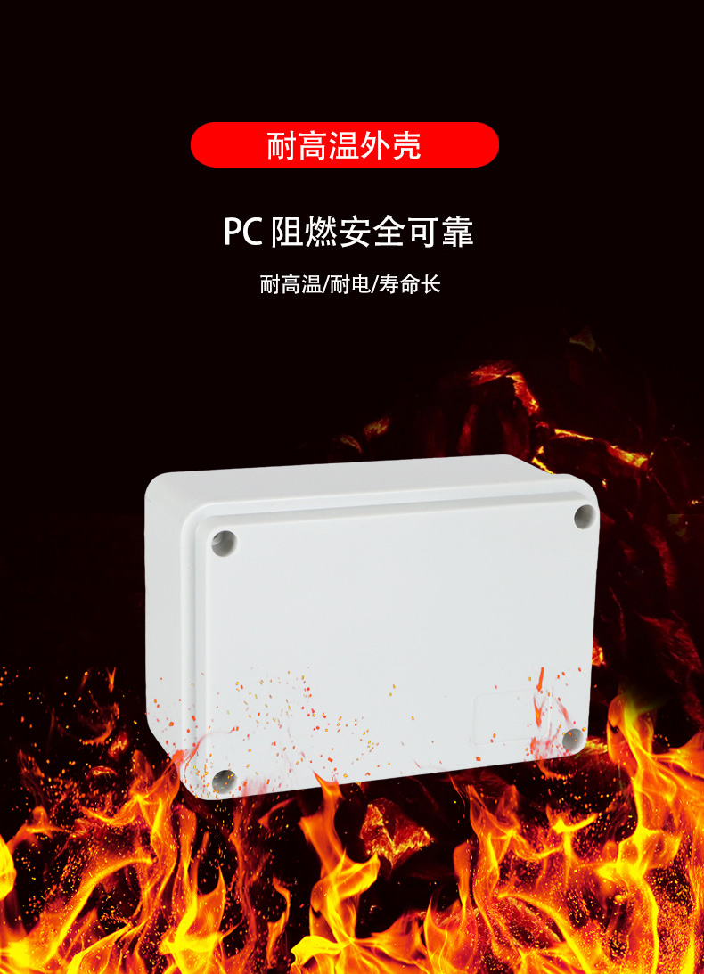 多重密封/安全防水 防水IP等級 (IP44)可供選材料(常ABS)ABS阻燃、PC,合金材PC阻燃安全可靠/耐高溫/耐電/壽命長每一個部分都是精心挑選的,只是為了打造一個好的產(chǎn)品