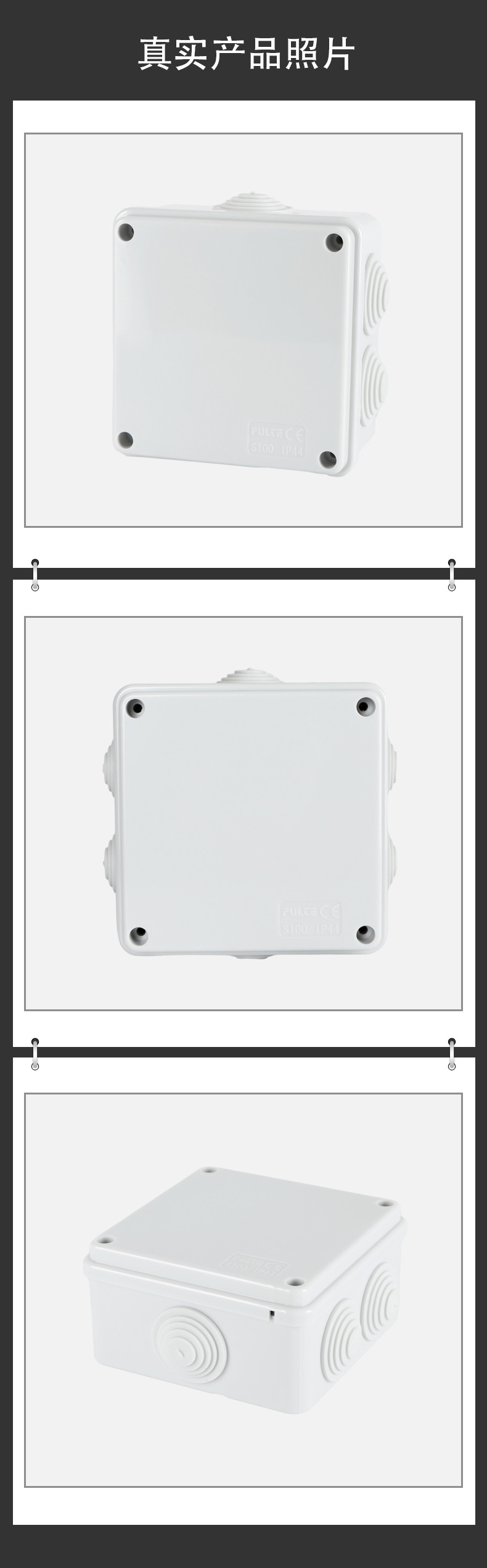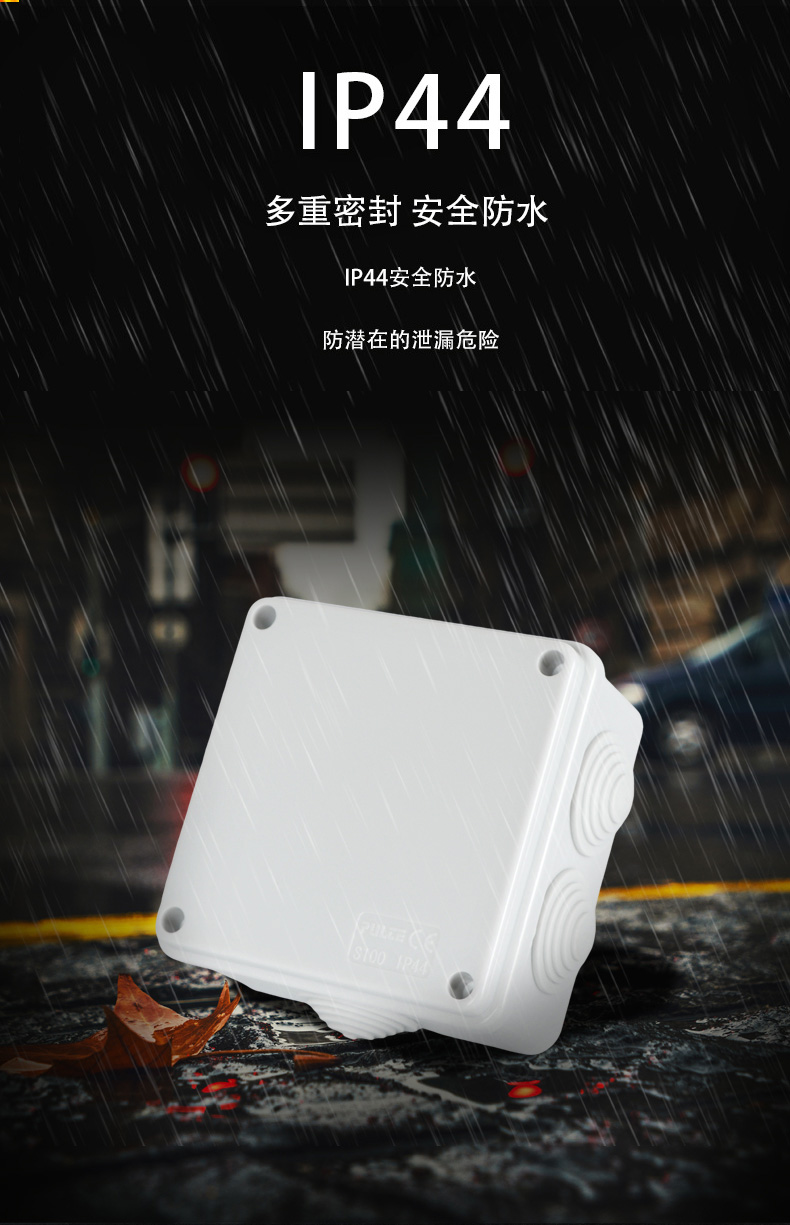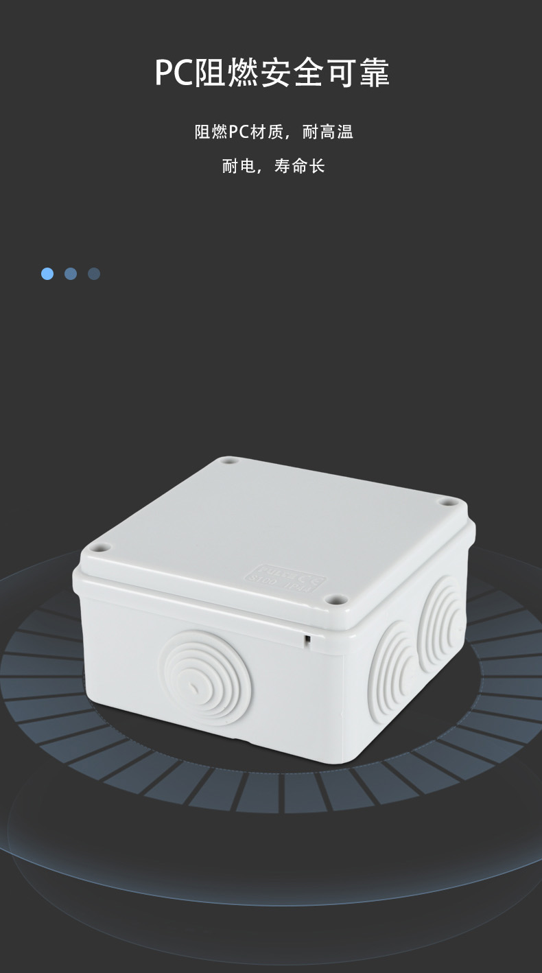 尺寸:100×100×50(mm)多重密封/安全防水 防水IP等級 (IP44)可供選材料(常ABS)ABS阻燃、PC,合金材PC阻燃安全可靠/耐高溫/耐電/壽命長每一個部分都是精心挑選的,只是為了打造一個好的產品