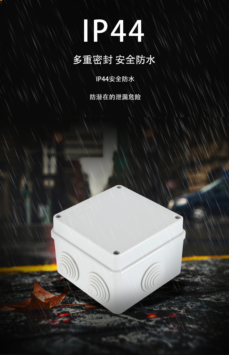 尺寸:100×100×50(mm)多重密封/安全防水 防水IP等級 (IP44)可供選材料(常ABS)ABS阻燃、PC,合金材PC阻燃安全可靠/耐高溫/耐電/壽命長每一個部分都是精心挑選的,只是為了打造一個好的產(chǎn)品