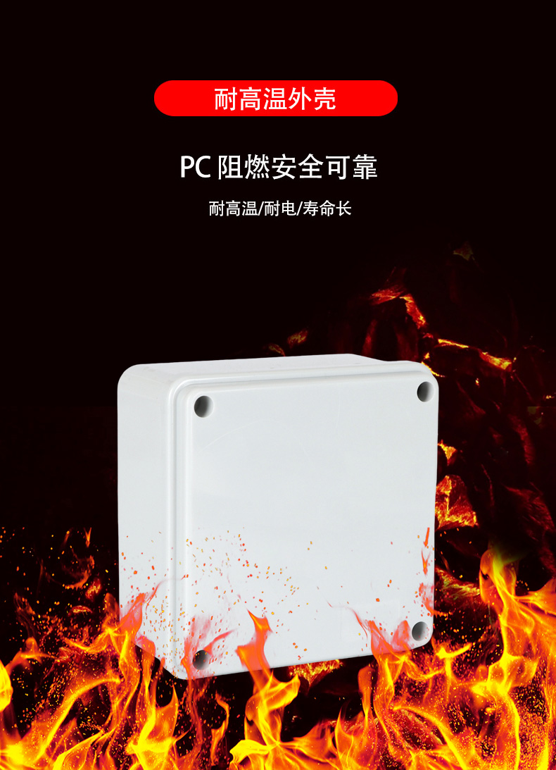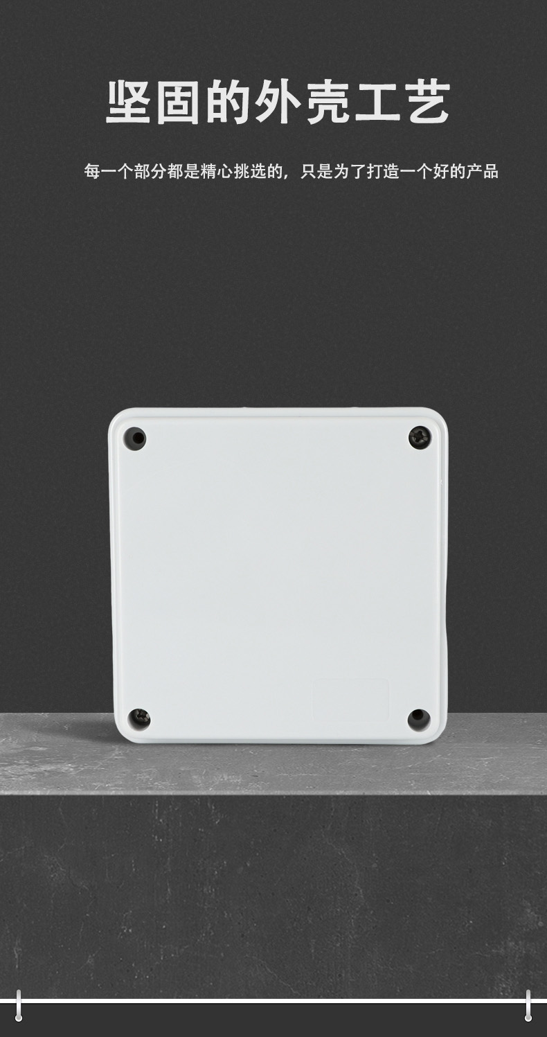 尺寸:100×100×50(mm)多重密封/安全防水 防水IP等級(jí) (IP44)可供選材料(常ABS)ABS阻燃、PC,合金材PC阻燃安全可靠/耐高溫/耐電/壽命長(zhǎng)每一個(gè)部分都是精心挑選的,只是為了打造一個(gè)好的產(chǎn)品