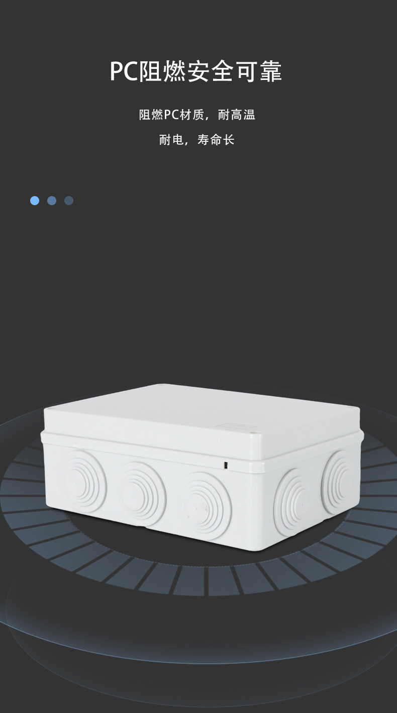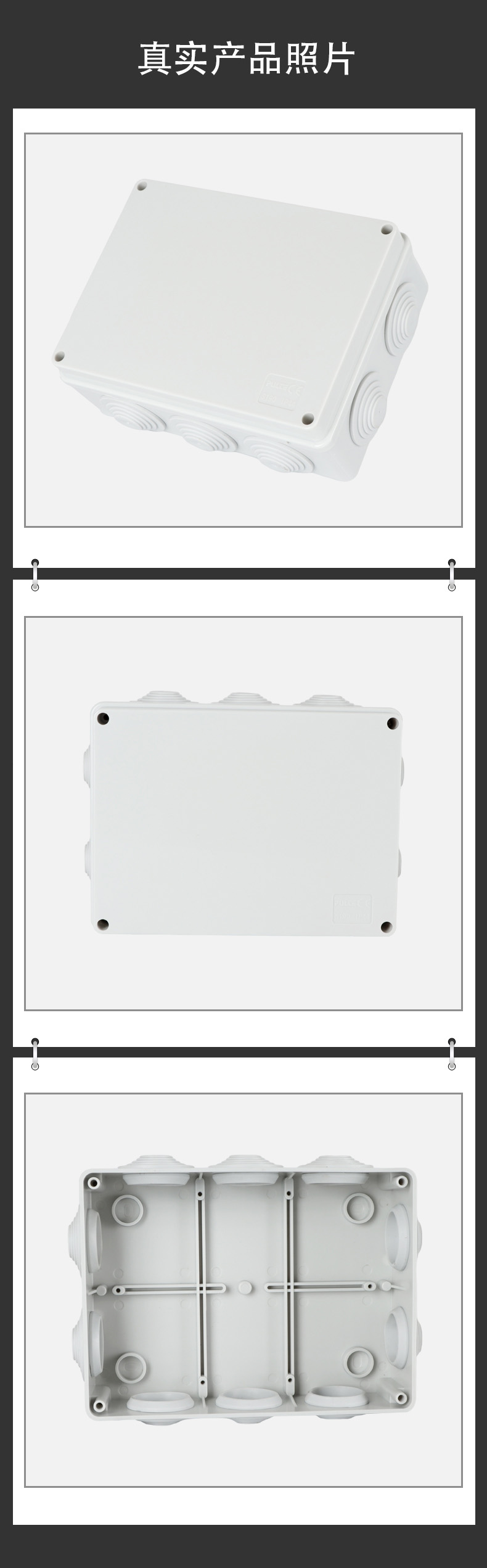 尺寸:190×140×70(mm)多重密封/安全防水 防水IP等級(jí) (IP44)可供選材料(常ABS)ABS阻燃、PC,合金材PC阻燃安全可靠/耐高溫/耐電/壽命長每一個(gè)部分都是精心挑選的,只是為了打造一個(gè)好的產(chǎn)品