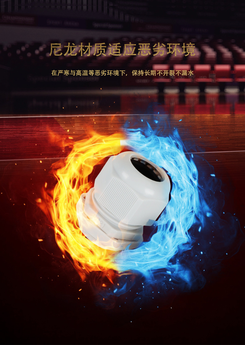 尼龍材質(zhì)適用惡劣環(huán)境紅、灰、黑、深灰、白、藍(lán) 六種顏色常規(guī):黑、灰兩種顏色,其它顏色需要定做在嚴(yán)寒與高溫等惡劣環(huán)境下,保持長(zhǎng)期不開裂不漏水高密封性防水接頭保護(hù)電纜安全,長(zhǎng)期使用不容易滲水