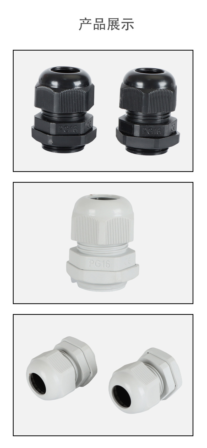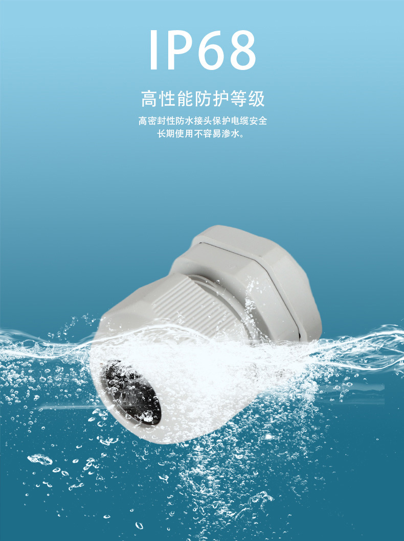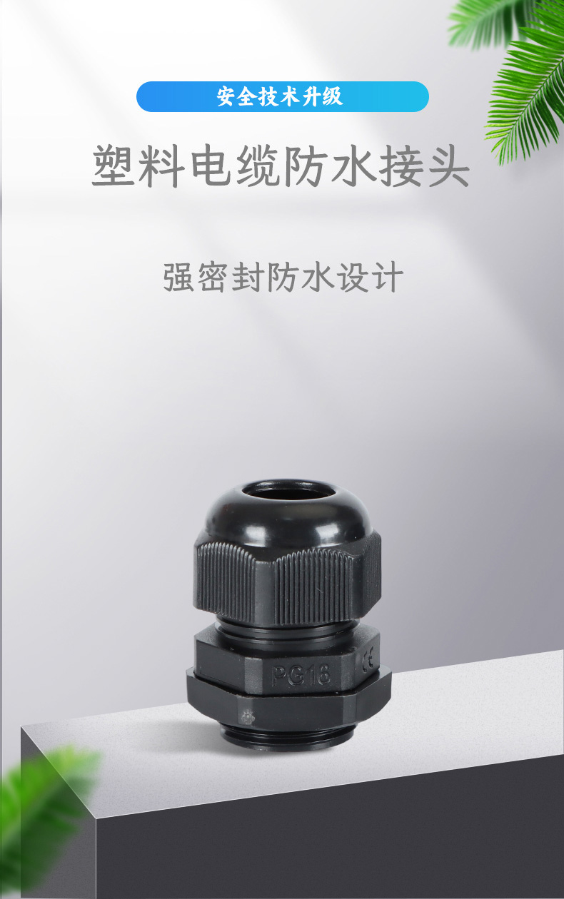 尼龍材質(zhì)適用惡劣環(huán)境紅、灰、黑、深灰、白、藍(lán) 六種顏色常規(guī):黑、灰兩種顏色,其它顏色需要定做在嚴(yán)寒與高溫等惡劣環(huán)境下,保持長(zhǎng)期不開(kāi)裂不漏水高密封性防水接頭保護(hù)電纜安全,長(zhǎng)期使用不容易滲水