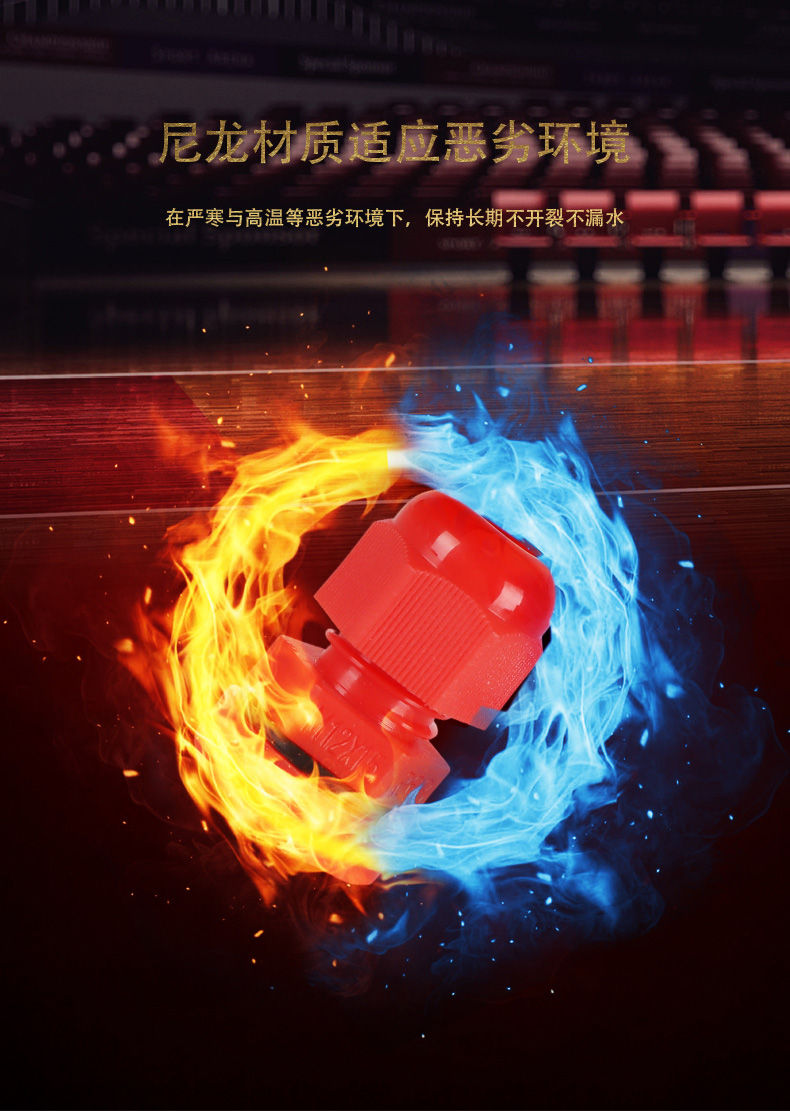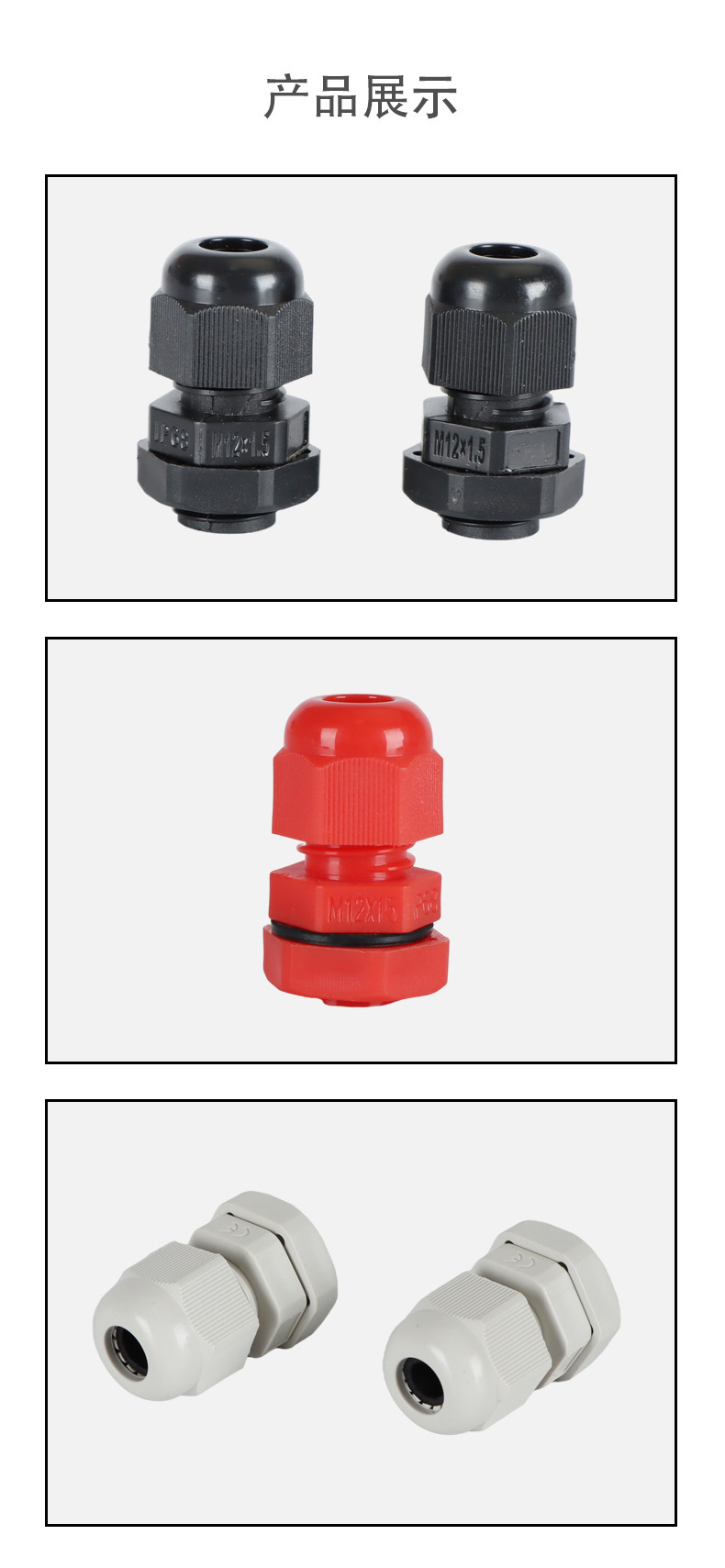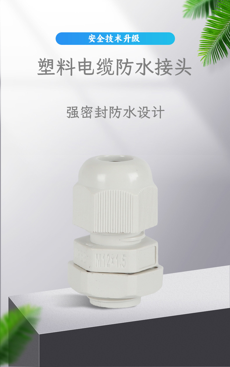 尼龍材質(zhì)適用惡劣環(huán)境紅、灰、黑、深灰、白、藍(lán) 六種顏色常規(guī):黑、灰兩種顏色,其它顏色需要定做在嚴(yán)寒與高溫等惡劣環(huán)境下,保持長(zhǎng)期不開裂不漏水高密封性防水接頭保護(hù)電纜安全,長(zhǎng)期使用不容易滲水